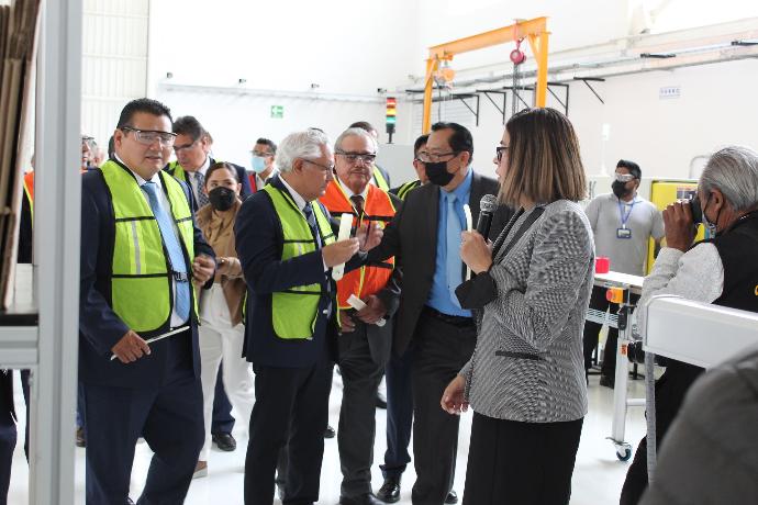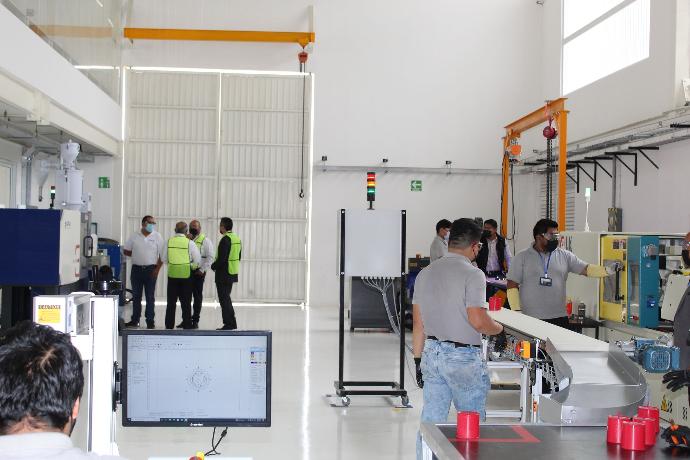 Autoridades dieron un recorrido por las instalaciones dirigido por la Jefa de Laboratorio Ing. María de Lourdes Espinoza Sánchez quien les mostró el alcance y se hizo una demostración del proceso de inyección de plástico.
