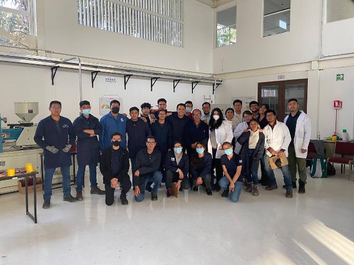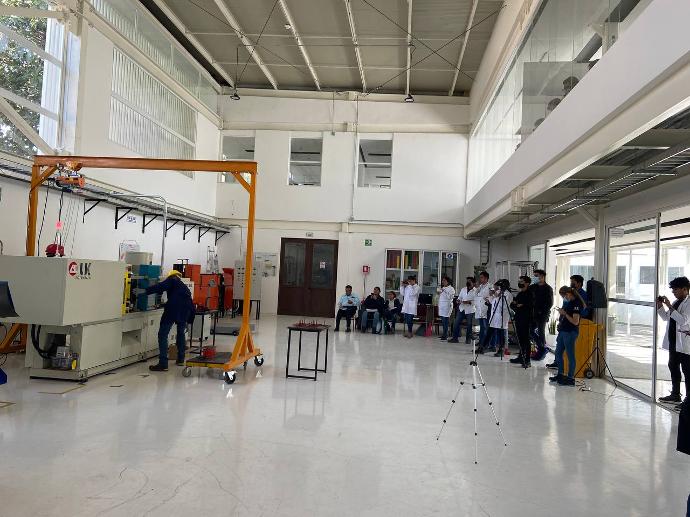 Posteriormente los alumnos se dirigieron al Taller de Procesos Productivos para visualizar un proceso de cambio de herramental, en este caso moldes de inyección. Se brindo una explicación del proceso de Inyección, de la capacidad de la máquina y de operación en general a cargo del alumno: Francisco Laguna.